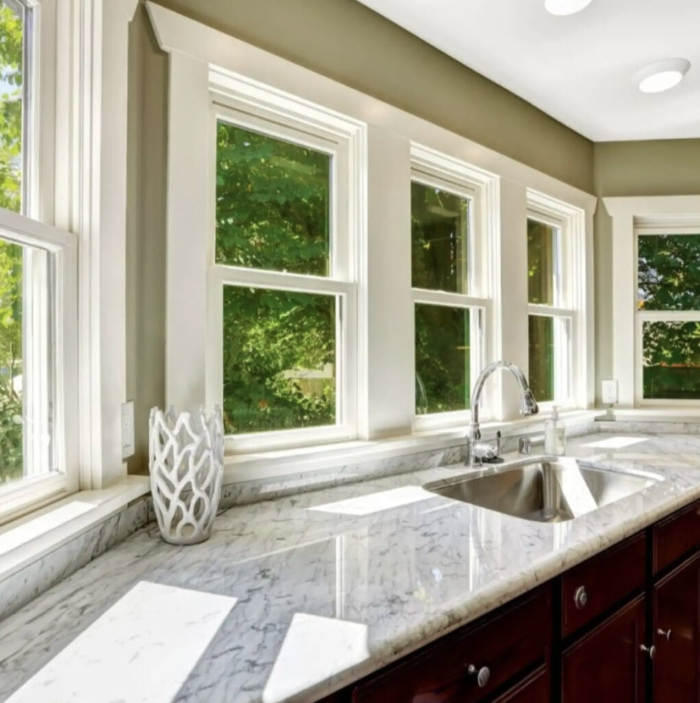 Garden windows extend outward and provide a sunlit space for plants and herbs. With side vents for airflow and a deep sill for displaying greenery, they’re a charming addition to any kitchen.